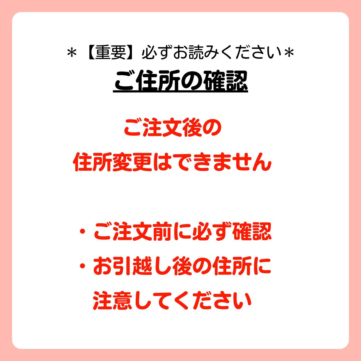 ・ご注文後の住所変更はできません
