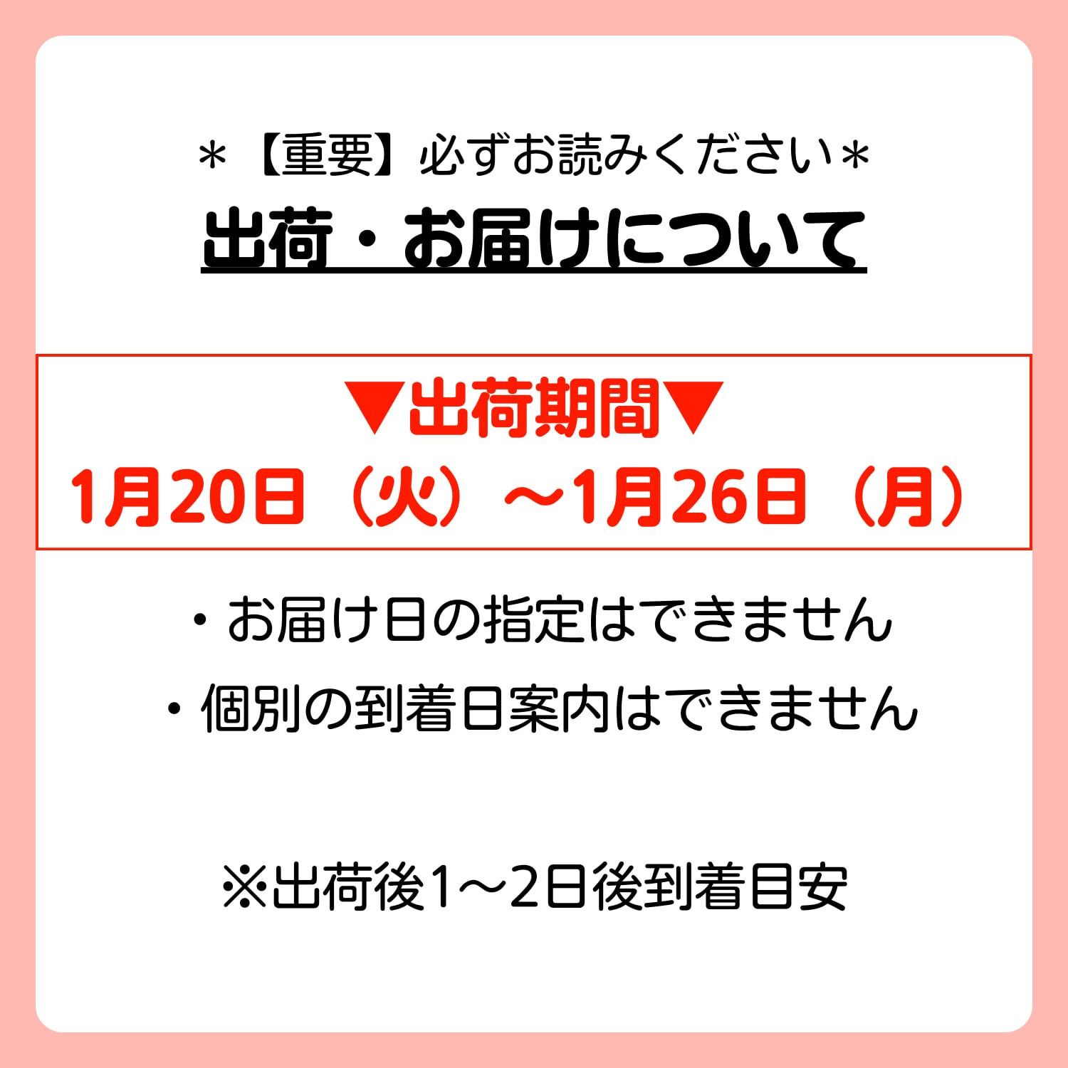 ※出荷後1〜2日後到着が目安です