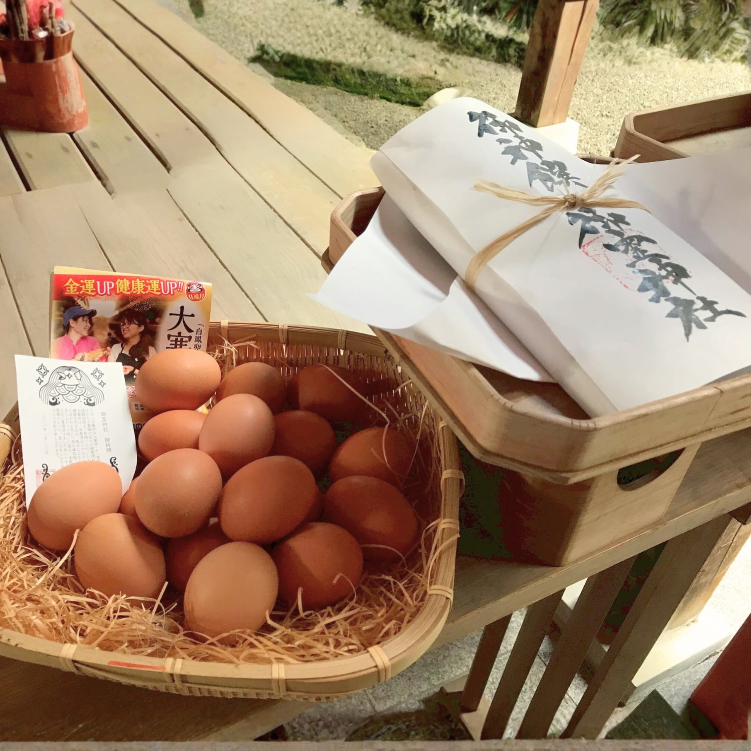 さかもと養鶏の大寒卵には、毎年恒例で、地元の神社にてご祈祷を受けた「御札」 をお付けしています。一年のはじまりに、「健康で、実りある一年になりますように」そんな想いを込めてお届けしています。
